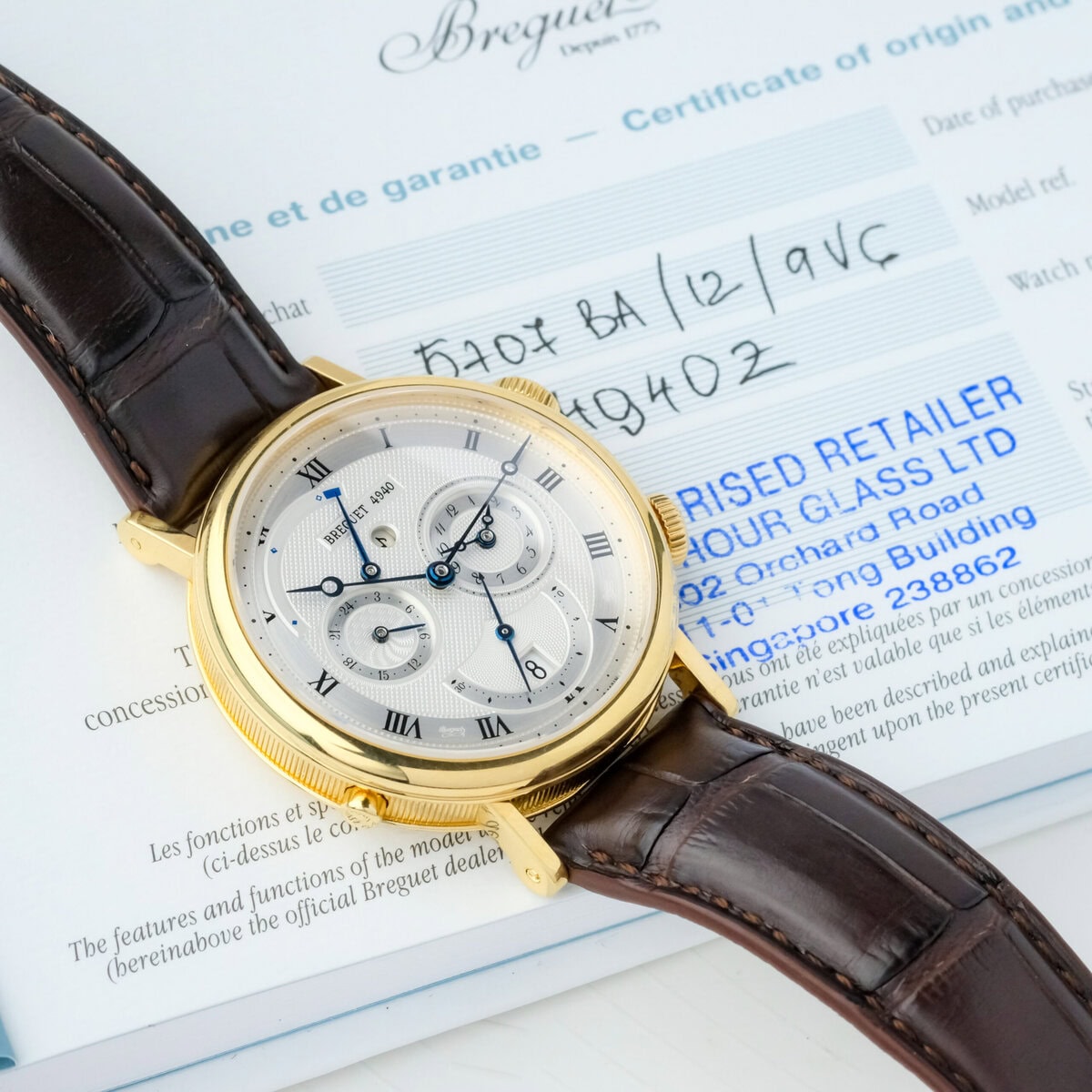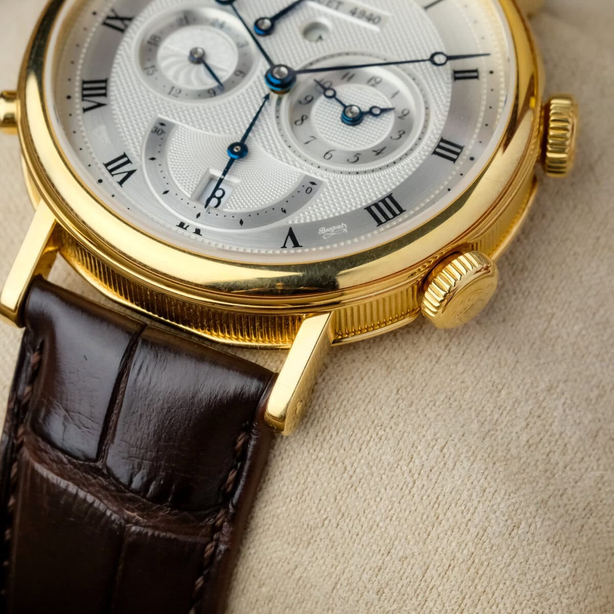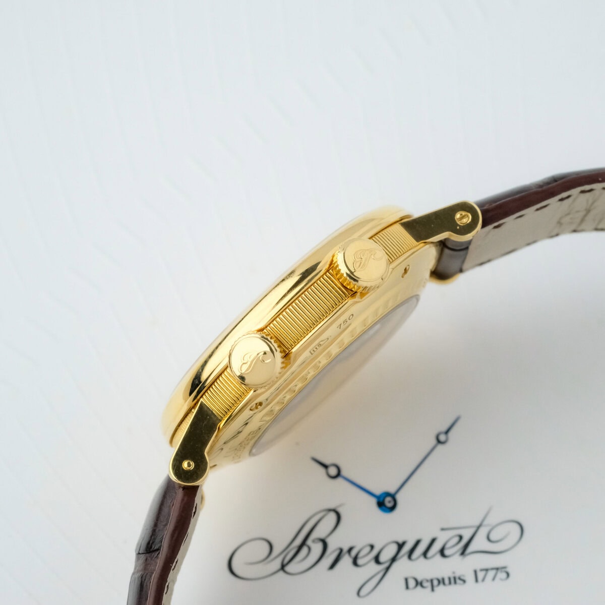 Offered as a complete full set with original box, papers and Breguet folding clasp, this piece represents a rare opportunity to acquire a complicated dress watch from one of the most revered names in haute horlogerie. A distinguished collector’s watch that perfectly balances elegance, tradition and mechanical ingenuity.