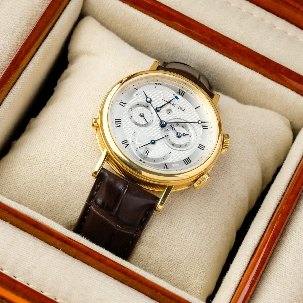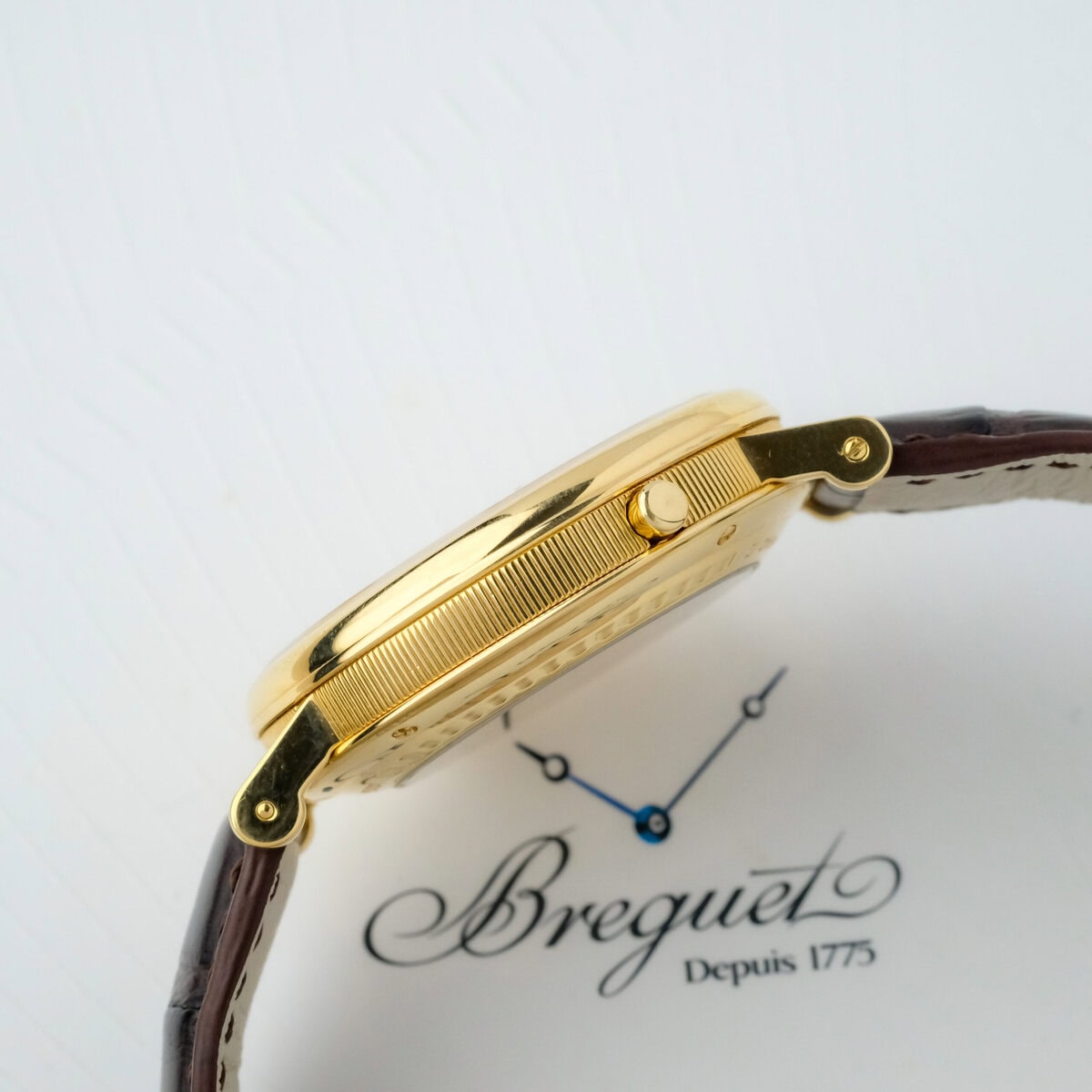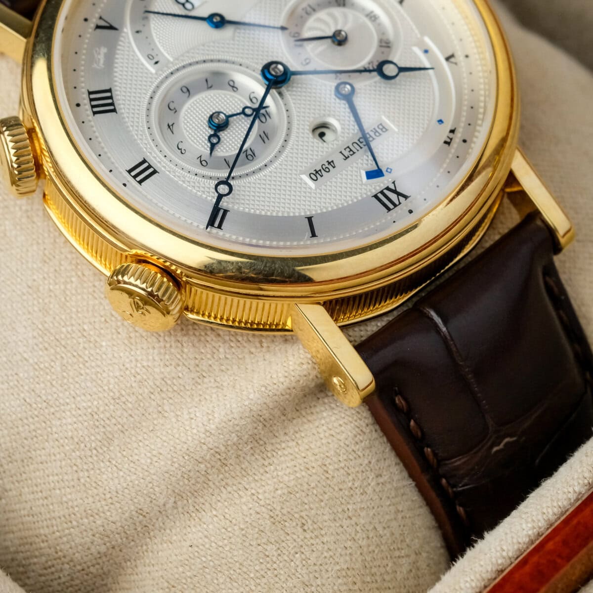 Offered as a complete full set with original box, papers and Breguet folding clasp, this piece represents a rare opportunity to acquire a complicated dress watch from one of the most revered names in haute horlogerie. A distinguished collector’s watch that perfectly balances elegance, tradition and mechanical ingenuity.