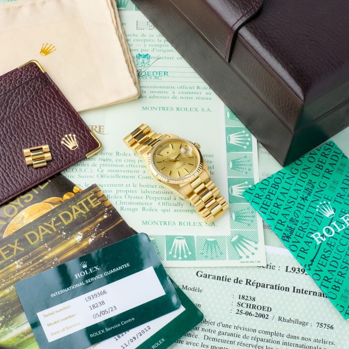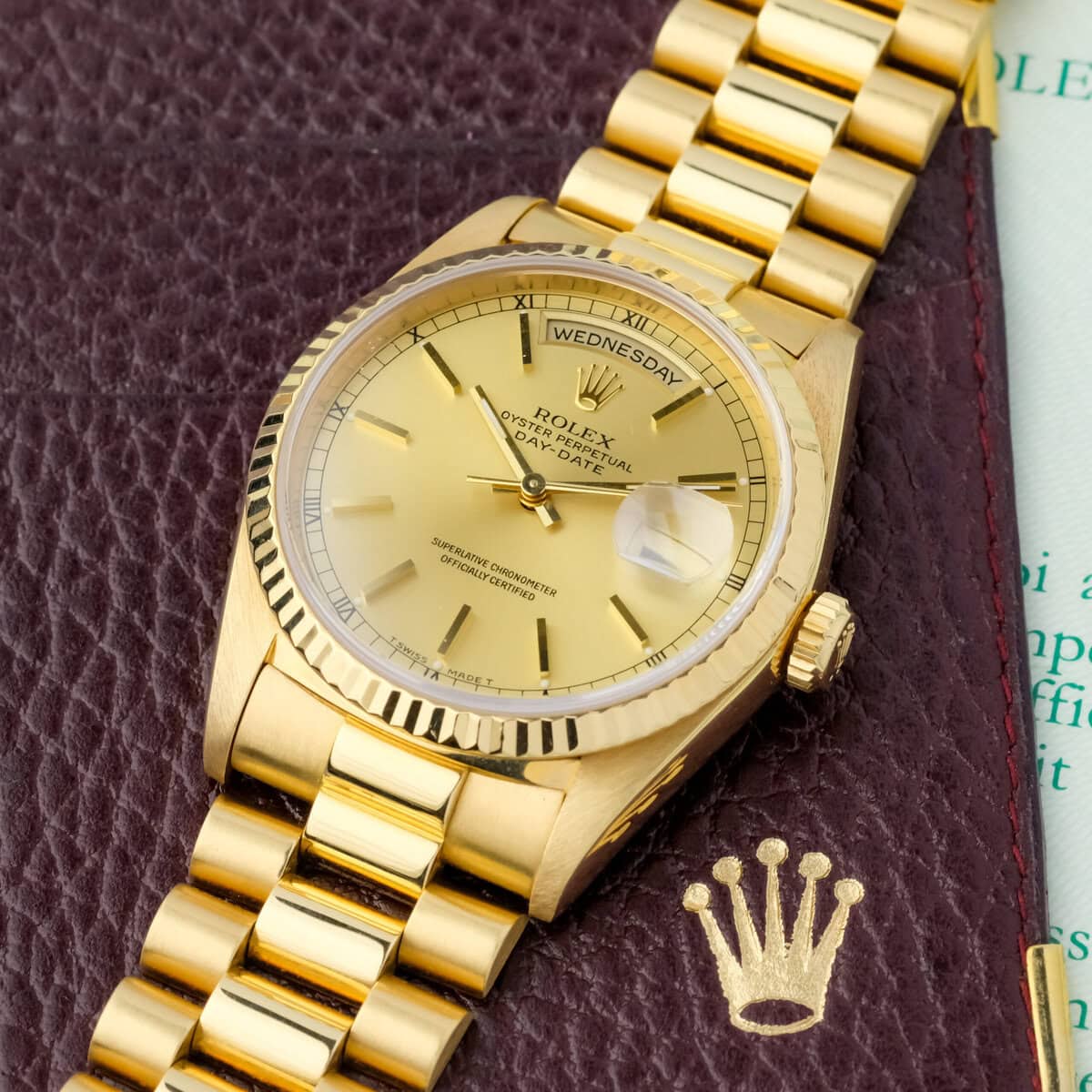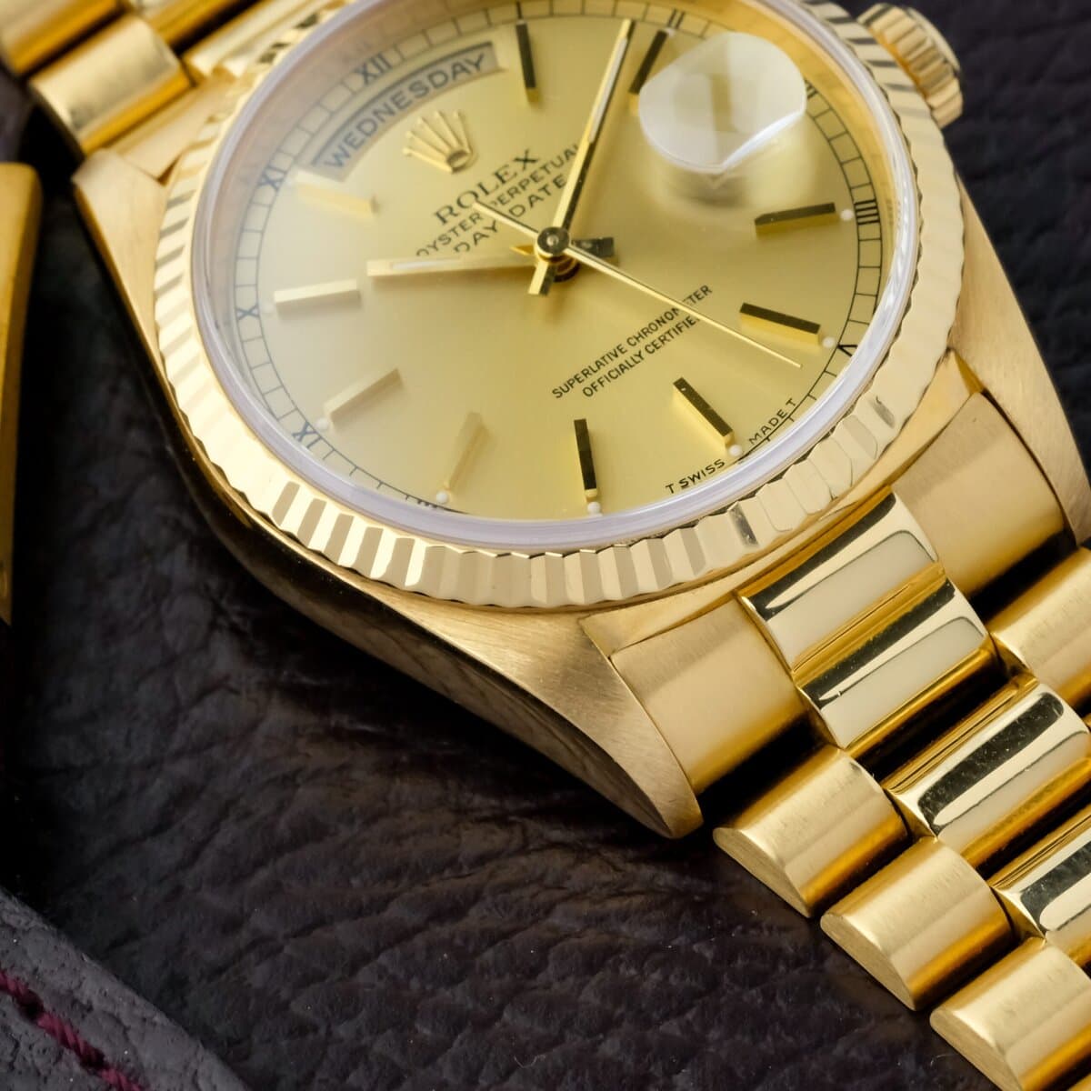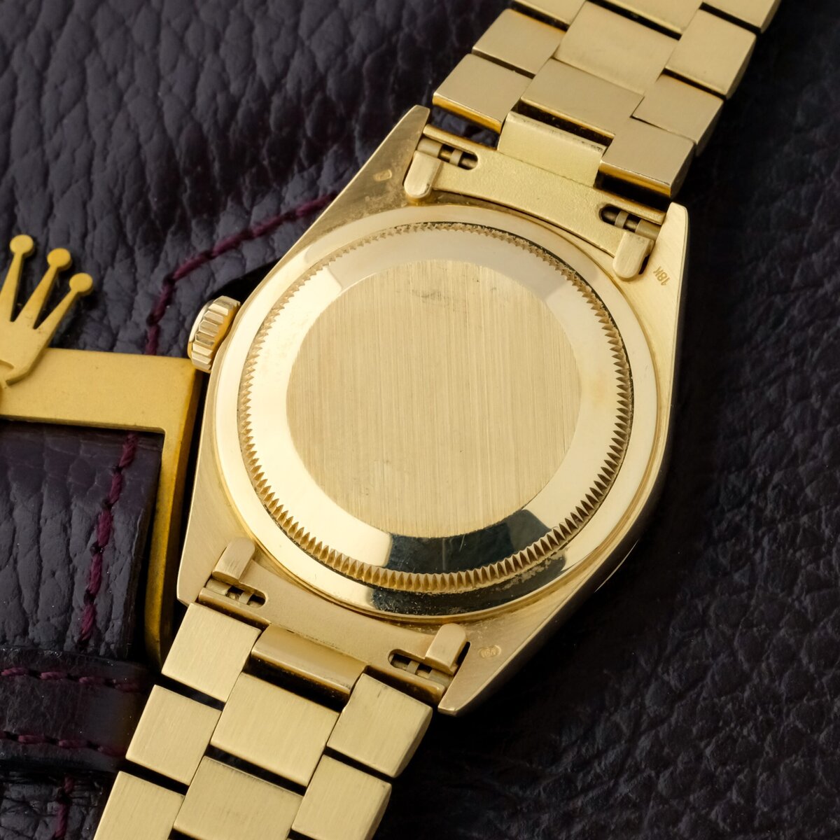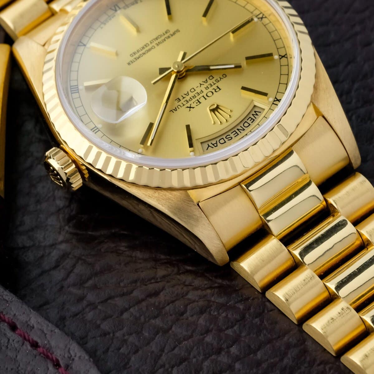 This Rolex Day Date reference 18238 is a quintessential example of one of the brand’s most iconic and prestigious timepieces. Crafted entirely in 18k yellow gold, the 36 millimeter case embodies the perfect balance of elegance and presence that has defined the Day Date since its debut.